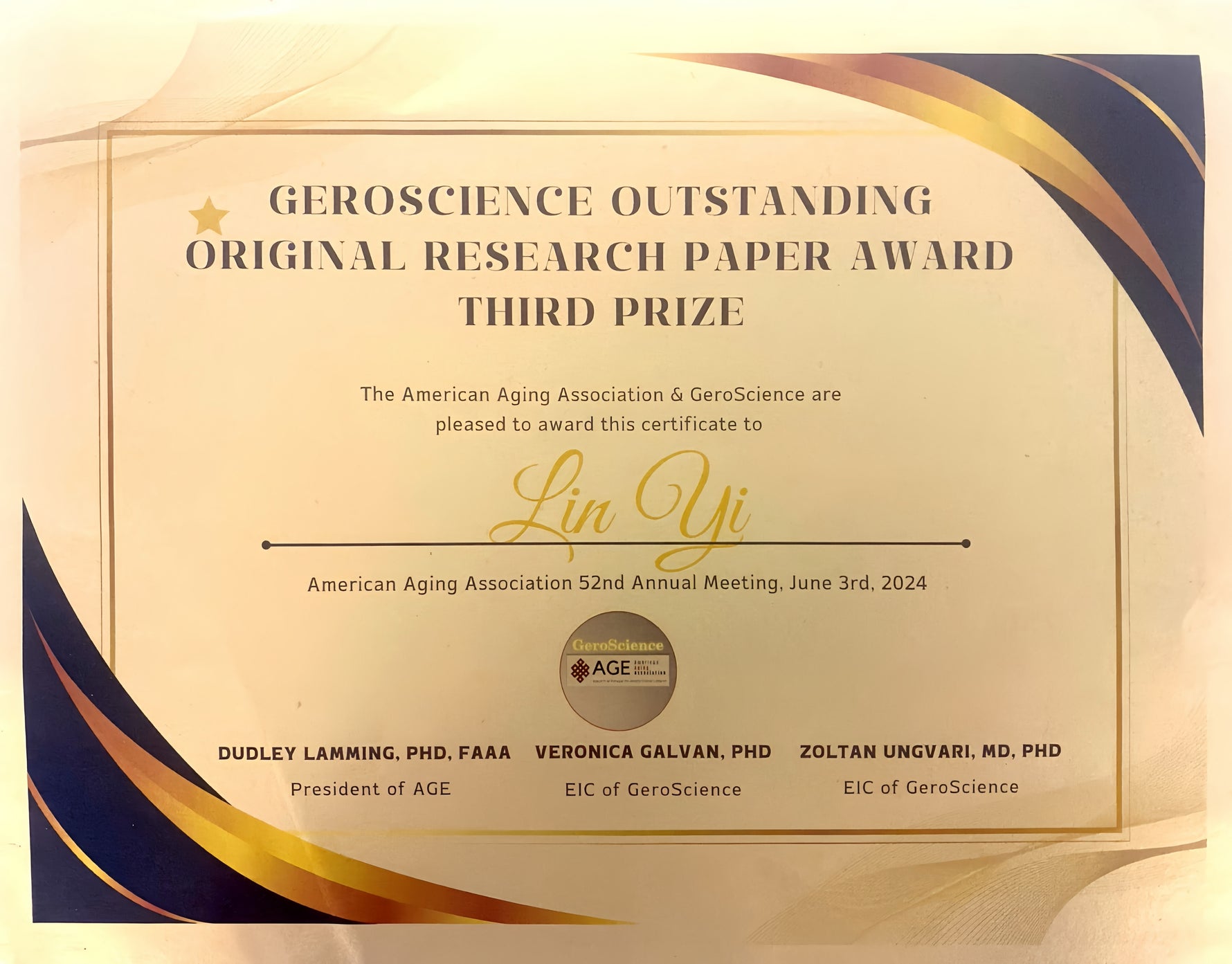 2024 Award from American Aging Association (AGE)